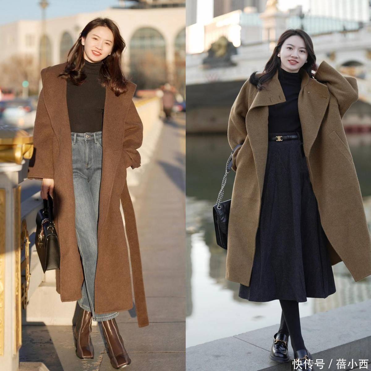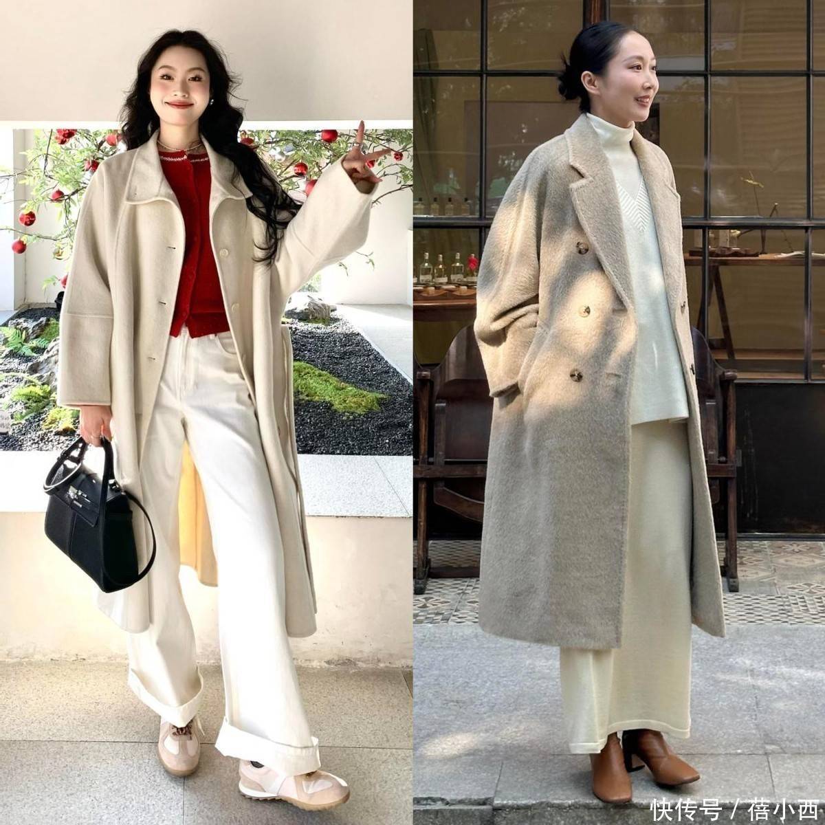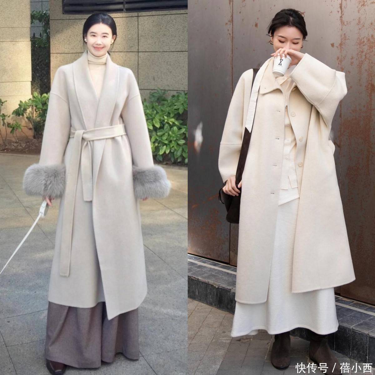 燕麦色大衣的风格也很百变,单独穿这一件大衣的时候,整体会自带柔和松弛感,搭配高跟鞋后,则能瞬间平衡慵懒与精致,保留了成熟女性的温婉气质,又能悄悄拉高比例显气场,甚至姐妹们还可以搭配一条黑色丝袜,增加性感魅力,和燕麦色大衣形成很明显的混搭。