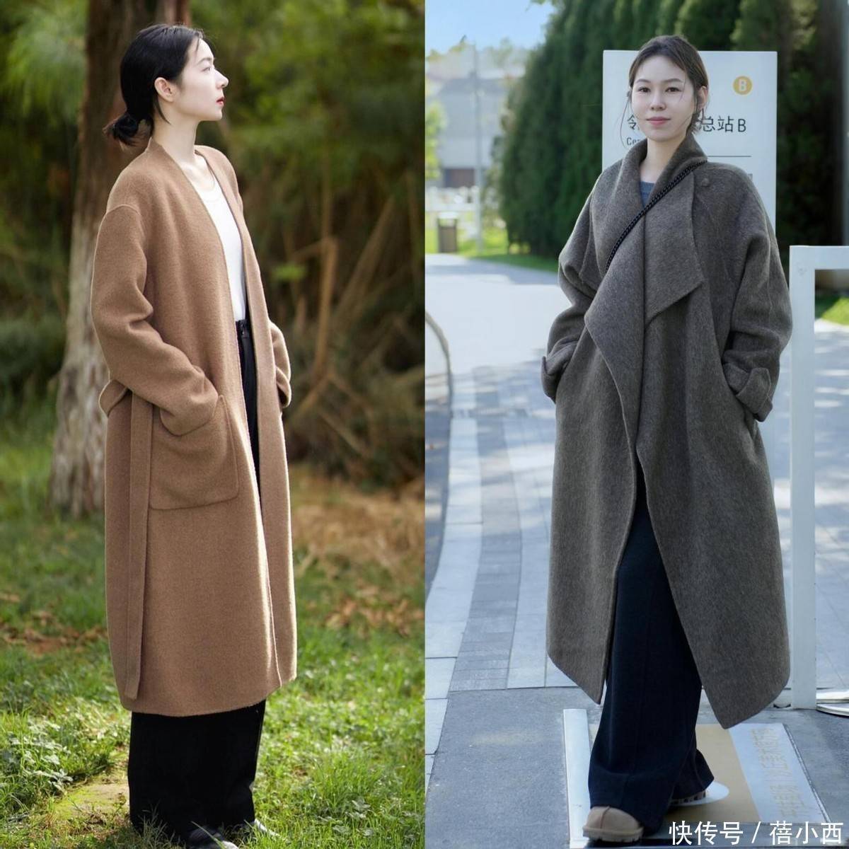 但选款要避开过浅的驼色,容易显脏还挑肤色,成熟女人优先选中驼色、深驼色,适配度更高,黄皮穿也能驾驭,再加上高级的羊毛混纺或纯羊绒材质加持,手感细腻有垂坠感,上身挺括不软塌,直接把贵气感拉满。