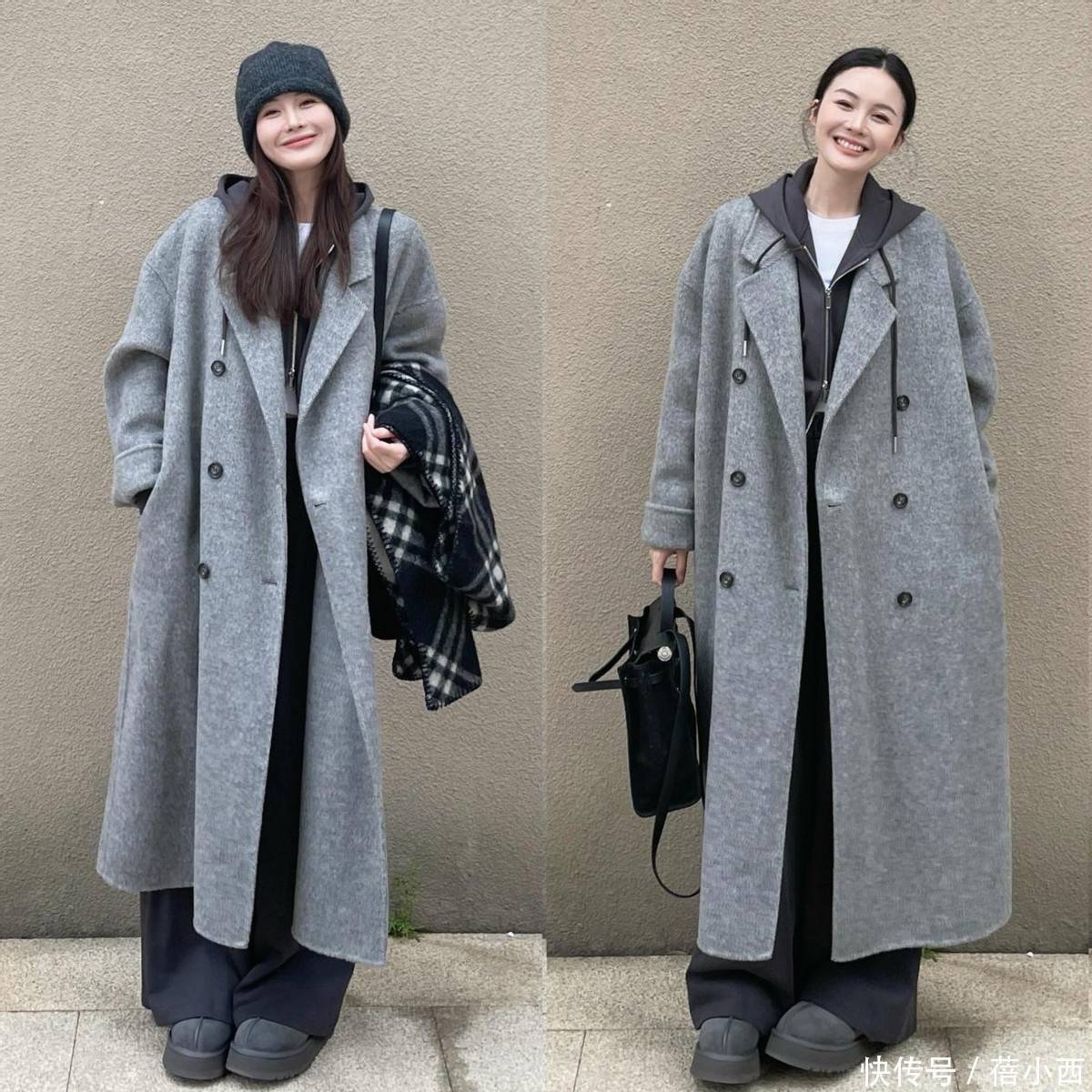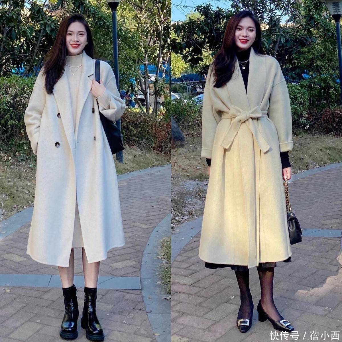建议各位优先挑中等厚度的羊毛或羊绒材质,触感柔软有垂感,上身不臃肿还显质感,避免选过薄软塌的面料,容易没型显廉价,版型可选茧型或直筒款,茧型对腰腹有赘肉的女生超友好,能够悄悄藏肉不暴露缺点,直筒款则比较利落干练,通勤休闲都能穿。