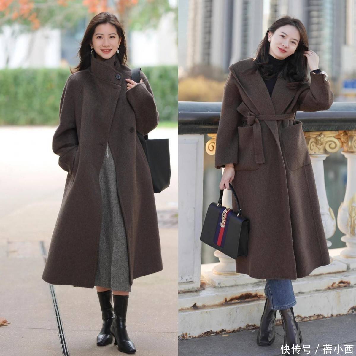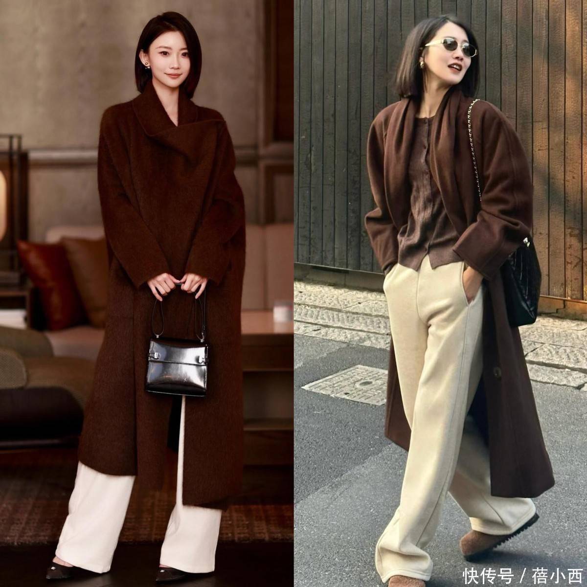 大地色单品在冬季特别受欢迎,尤其是棕色大衣,自带复古滤镜,和大红大紫的大衣不同,这种颜色自带沉稳感,穿在身上一点都不浮夸,刚好契合40+女生的成熟韵味。